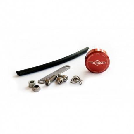 Le Kit comprend un bocal et son couvercle anodisé, un support de bocal, un tube et ses attaches pour s'adapter aux maîtres-cylindre BAR/BARR/COR/MC12,7 de la marque BERINGER.