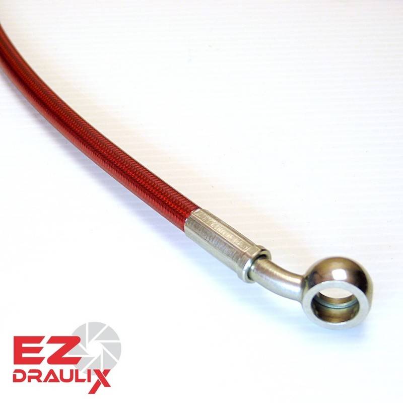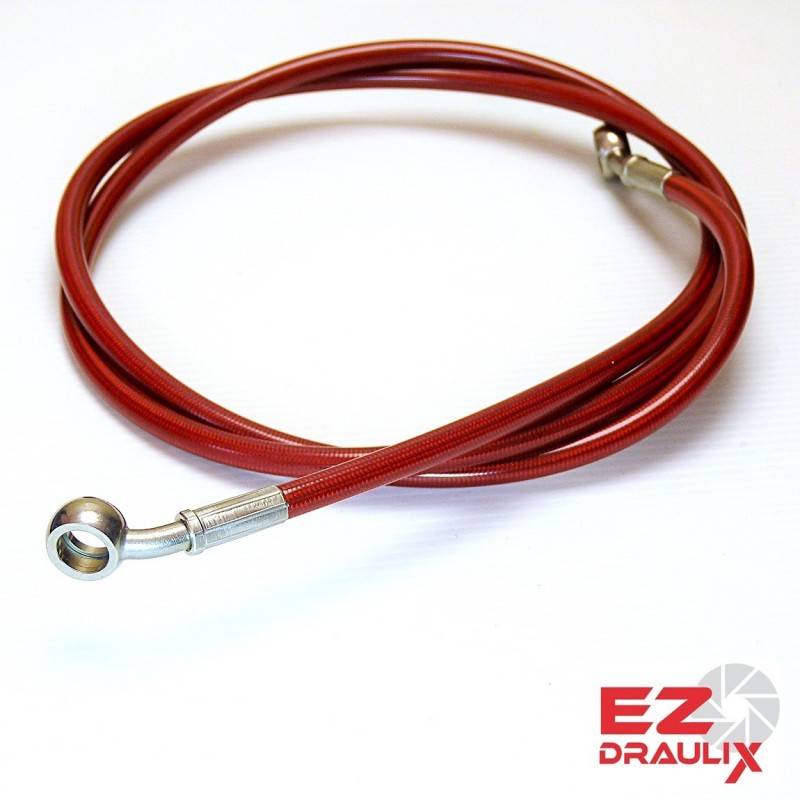 - Un flexible aviation type moto, Dash 3 avec tresse inox et revêtement PVC couleur Rouge Néon.