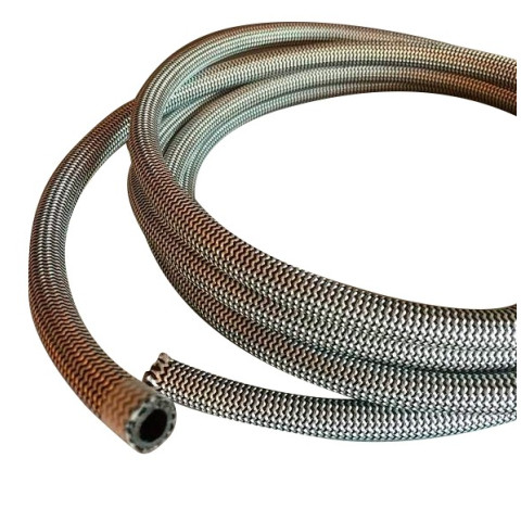 Tuyau EPDM recouvert d'une tresse polyester bicolore, particulièrement résistant aux liquides de freins DOT3, DOT4 et DOT5