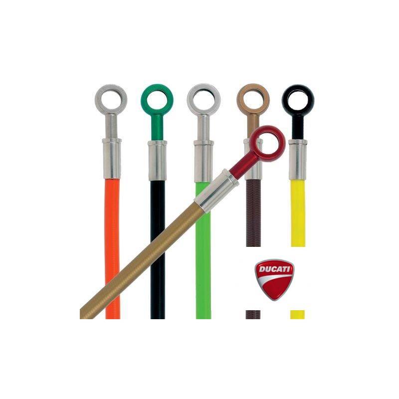 Braided brake line kit of your Ducati 900SS Mike Hailwood are manufactured and assembled by the EZDRAULIX partner from the last 15 years. Today more than 1,5 Million meters a year are produced by this factory, asserting they are produced as per the highest standards. Our wide range of more than 30 colors of PVC cover, makes us the N°1 in Europe for the variety of colors. We make loads of Brake lines & banjos combinations for tuning, racing and for your safety. Our PVC covered stainless steel brake line kits can also be made for motorcycles with ABS.
