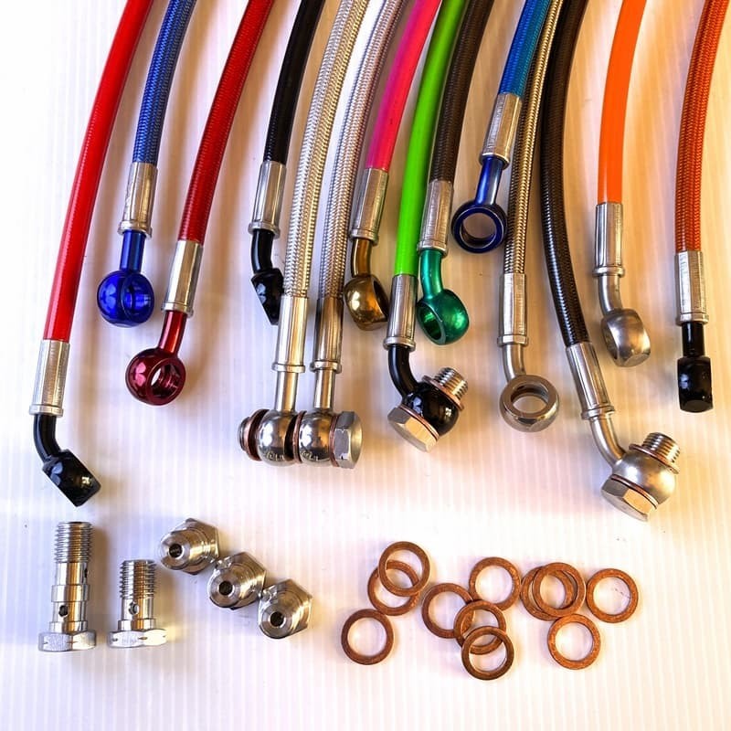 Braided brake line kit of your Triumph TSX 8 are manufactured and assembled by the EZDRAULIX partner from the last 15 years. Today more than 1,5 Million meters a year are produced by this factory, asserting they are produced as per the highest standards. Our wide range of more than 30 colors of PVC cover, makes us the N°1 in Europe for the variety of colors. We make loads of Brake lines & banjos combinations for tuning, racing and for your safety. Our PVC covered stainless steel brake line kits can also be made for motorcycles with ABS.